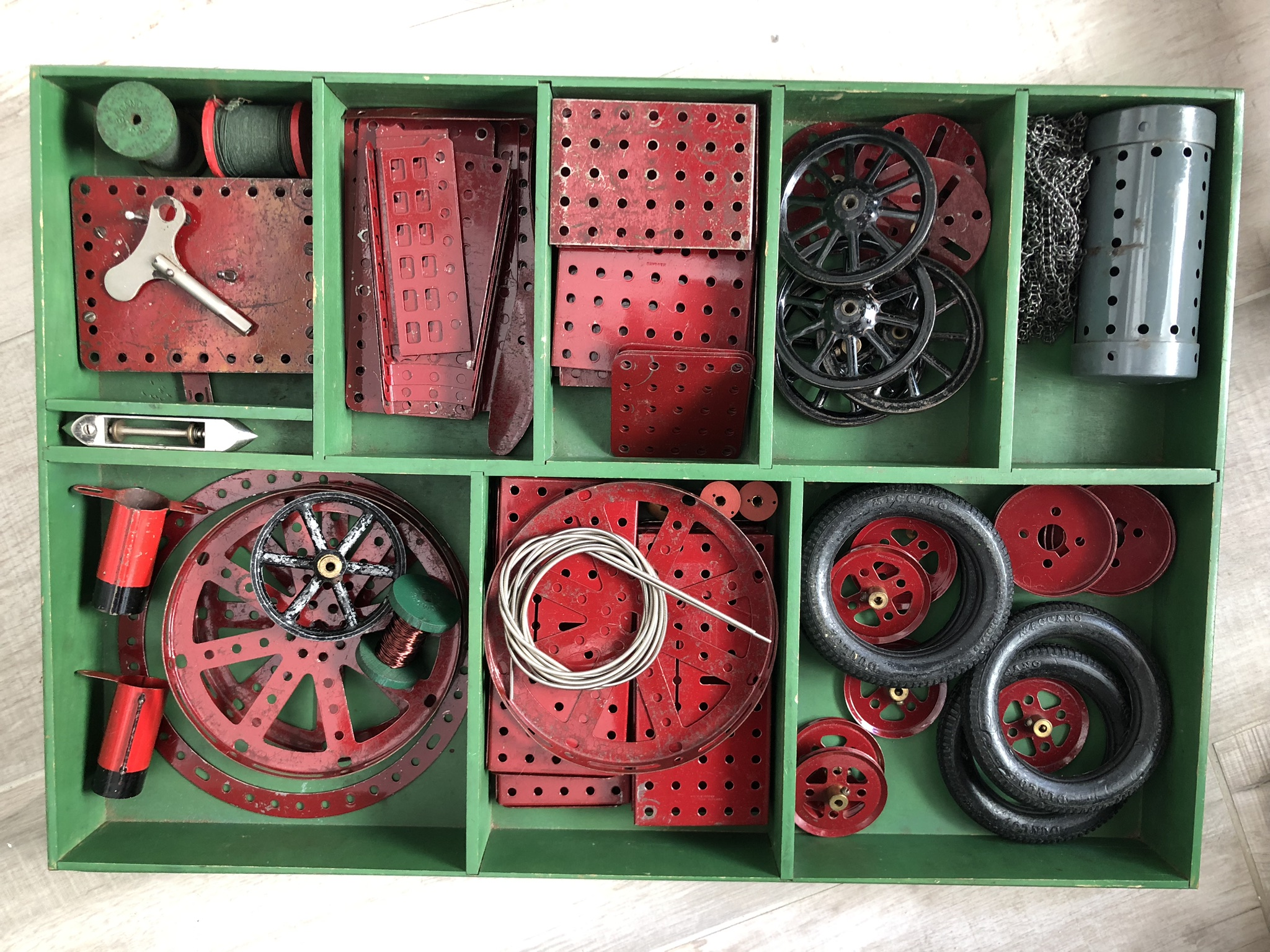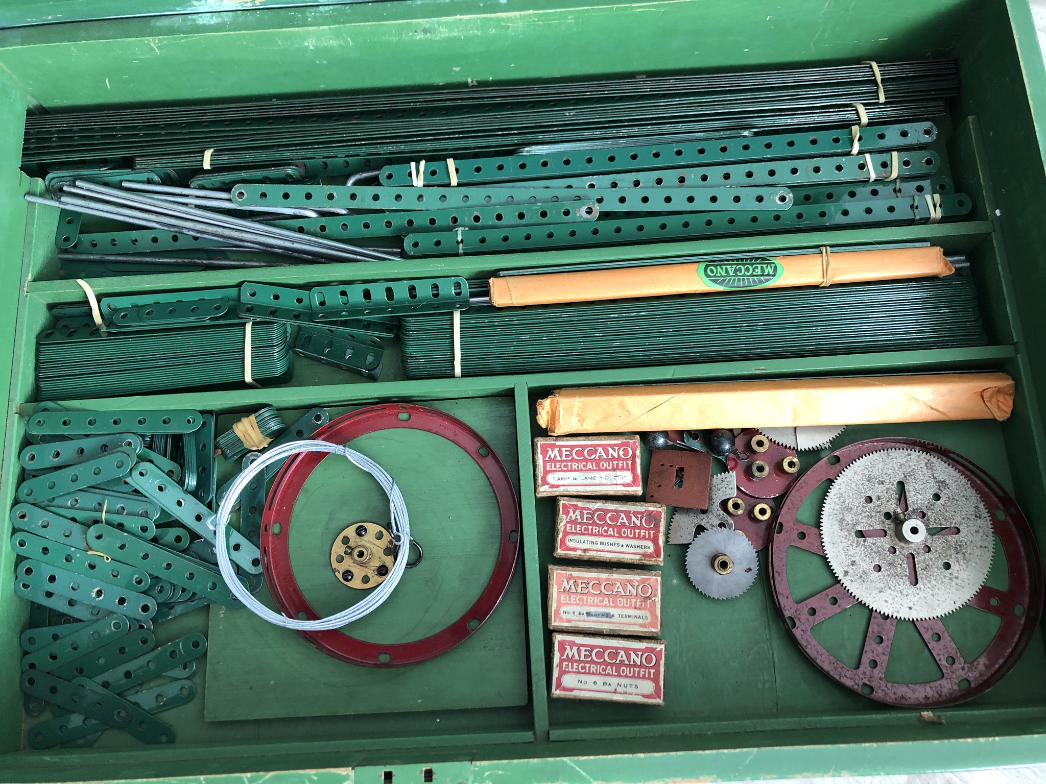 Acheté complète à environ 95% à un vendeur anglais voici une dizaine d'années, c'était un rêve d'enfant depuis que j'avais vu sa description dans un vieux manuel Meccano dont un de mes copains de collège avait hérité de son grand-père.