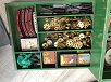 Coffret en bois à 2 étages et 2 tiroirs de la période "Rouge et Vert sombre" (Dark Red Green) qui a durée je pense de 1928 aux environs de 1930 ensuite les teintes se sont éclaircies.